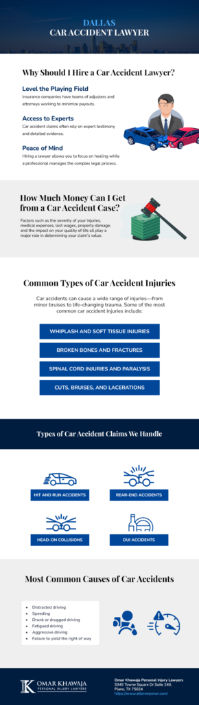 Were you injured in a car accident in Dallas, Texas? If so, you may be entitled to compensation for your injuries. Contact Omar Khawaja Personal Injury Lawyers at (469) 300-5046 for a free consultation with an experienced Dallas car accident lawyer.
